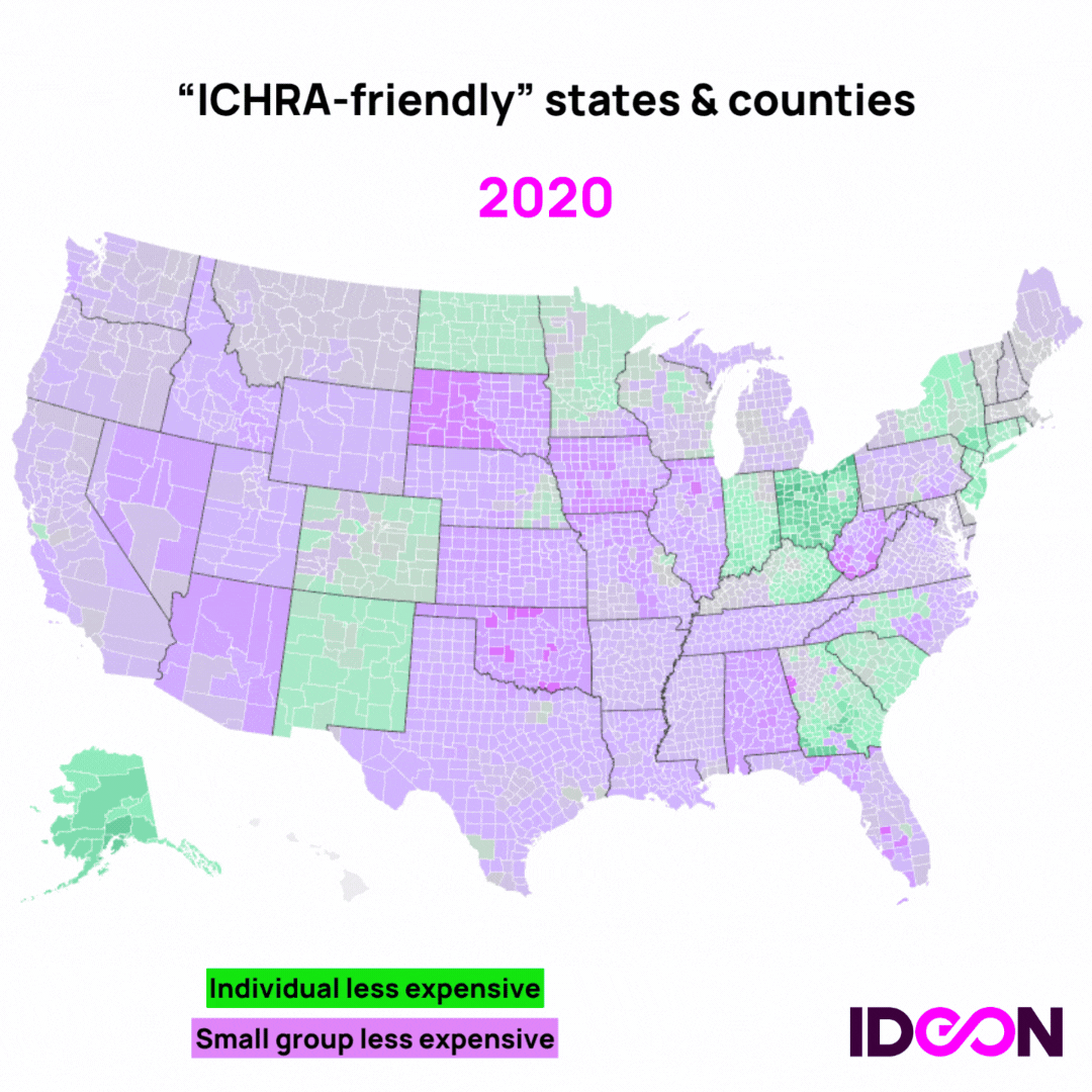 Each year, Ideon’s ICHRA map tracks where individual market premiums are lower than (or equal to) small-group premiums — a key signal of ICHRA viability across the U.S. And for 2026, the landscape is shifting:
